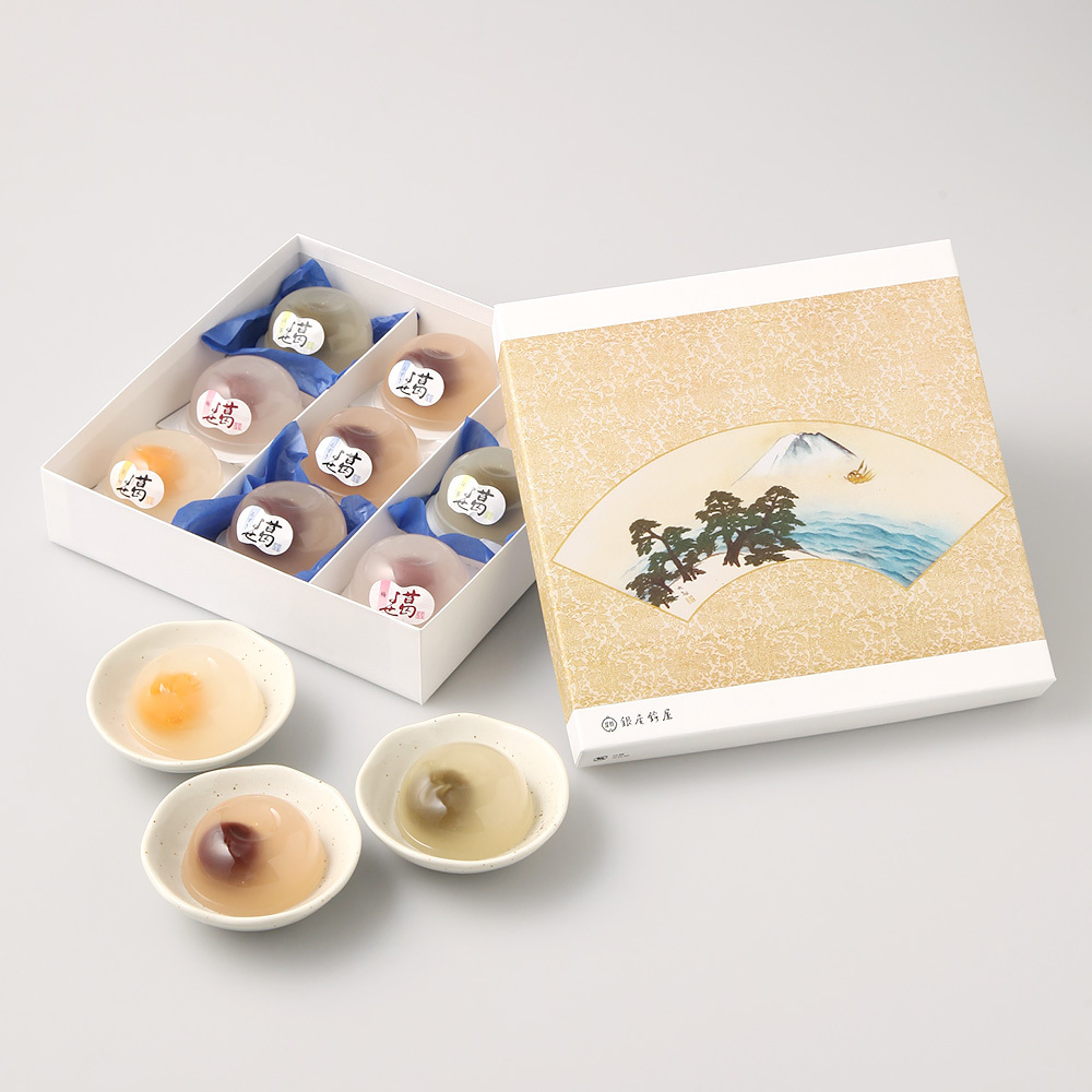 葛よせは、甘納豆の老舗「銀座鈴屋」によります夏季限定の涼菓です。透明な葛のなめらかな喉ごしと、丁寧に練り上げました飴の風味が際立つ逸品です。内容は、あずき、金柑、梅、抹茶の4種、計9個の詰め合わせとなっています。価格は、2,754円(税込、送料無料)です。
